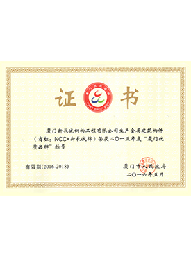 廈門新長誠鋼構(gòu)工程有限公司守合同重信用企業(yè)2016-2017年度