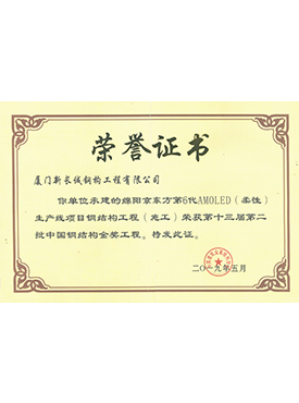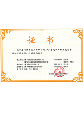 保灃2號(hào)廠房建設(shè)工程廈門市結(jié)構(gòu)優(yōu)質(zhì)工程證書