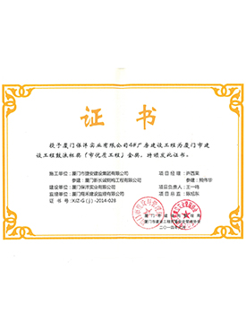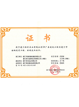 保灃3號(hào)廠房建設(shè)工程廈門市結(jié)構(gòu)優(yōu)質(zhì)工程證書