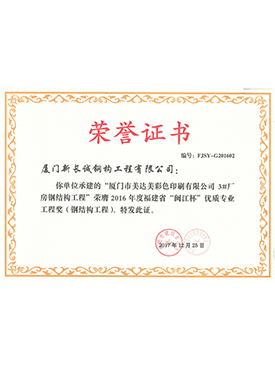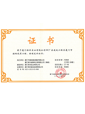 保灃4號(hào)廠房建設(shè)工程廈門市結(jié)構(gòu)優(yōu)質(zhì)工程證書