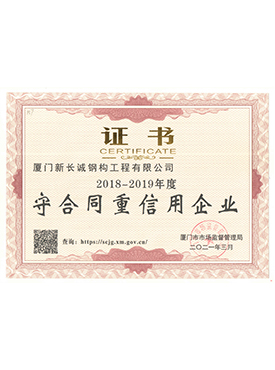 廈門市守合同重信用企業(yè)2018-2019年度證書